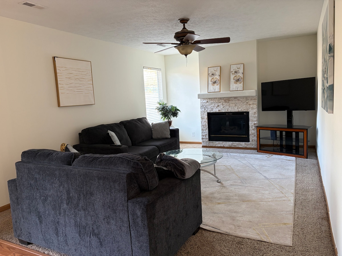 Welcome to our Charming & Cozy 3-bed, 2.5-bath home with a modern kitchen, spacious living areas (family room, living room, dining room). Upstairs, a master suite awaits, along with two additional bedrooms, dedicated desks, fridges and walk-in closets, along a laundry area. Enjoy the gas fireplaces indoor and outdoor, exercise equipments onsite, and a large fenced yard with a play set. Conveniently located in West Omaha, near all the highways, a perfect home for business or leisure stays.