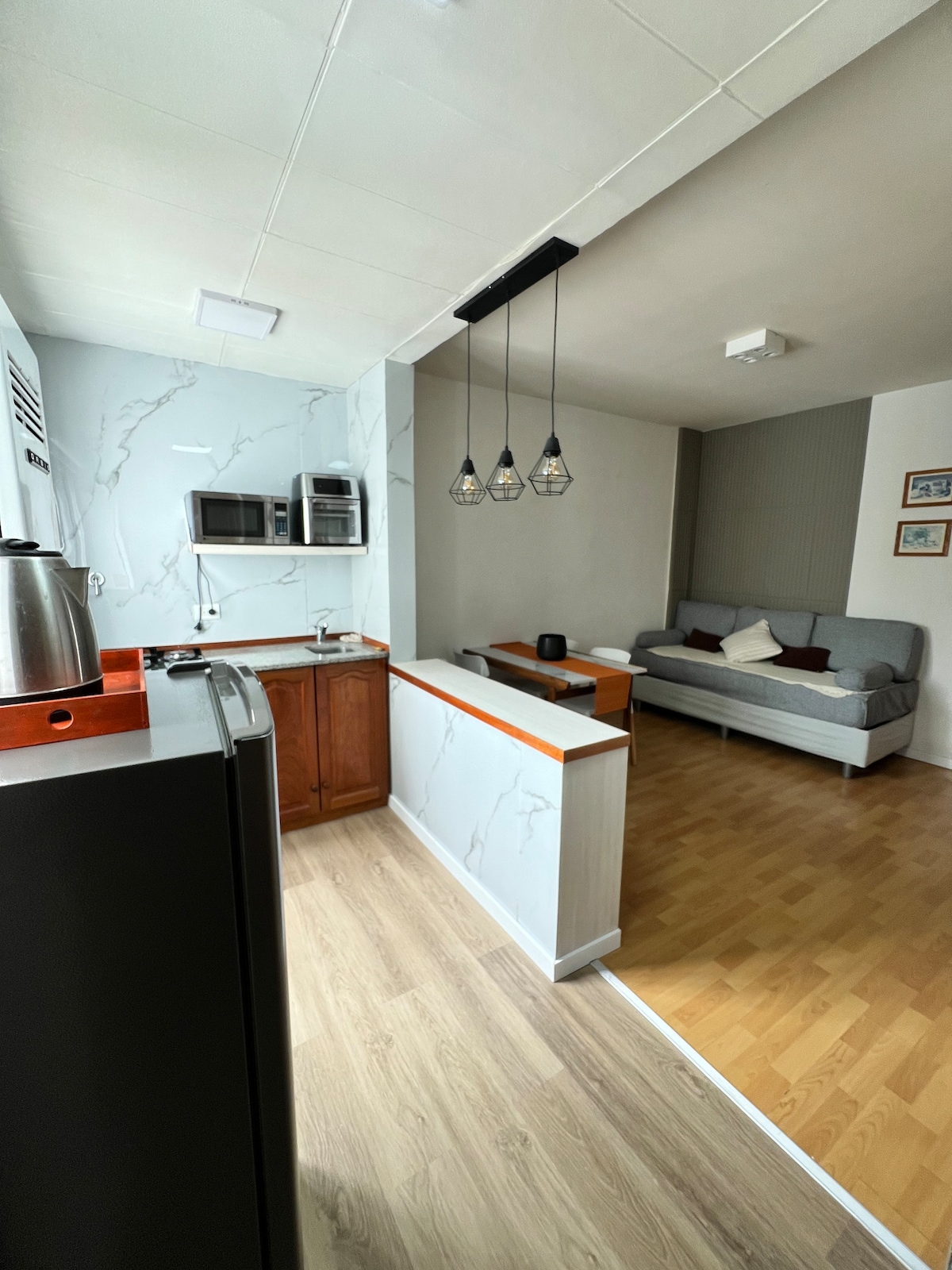 Relax with the whole family in this peaceful accommodation where tranquility fills the air. Duplex, 300m from the sea. Shared parking space and a patio with a barbecue grill. Ground floor: Kitchen, living–dining room with a sofa bed for 2, TV, and bathroom. Upper floor: 1 queen bed and 1 single bed in a semi-separated space, plus a bathroom. Air conditioning upstairs, heating, free Wi-Fi, alarm system, and washing machine. Shops nearby. 600m from Miguel Lillo Park.