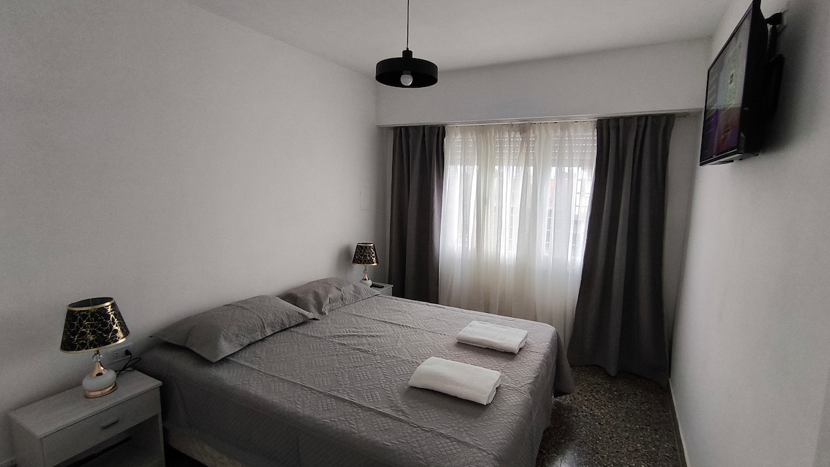Tres ambientes 5 personas. Ubicado a 5 cuadras de la playa, 2 de la peatonal. Dpto primer piso , cocina totalmente equipada,impecable, con todas las comodidades, microondas, TV led Samsung 32,Netflix y Disney , WiFi, heladera con freezer, cocina, gas natural, calefactor, ventilador, cochera cubierta, parrilla y patio compartido. Para la reserva se deberá hacer depósito