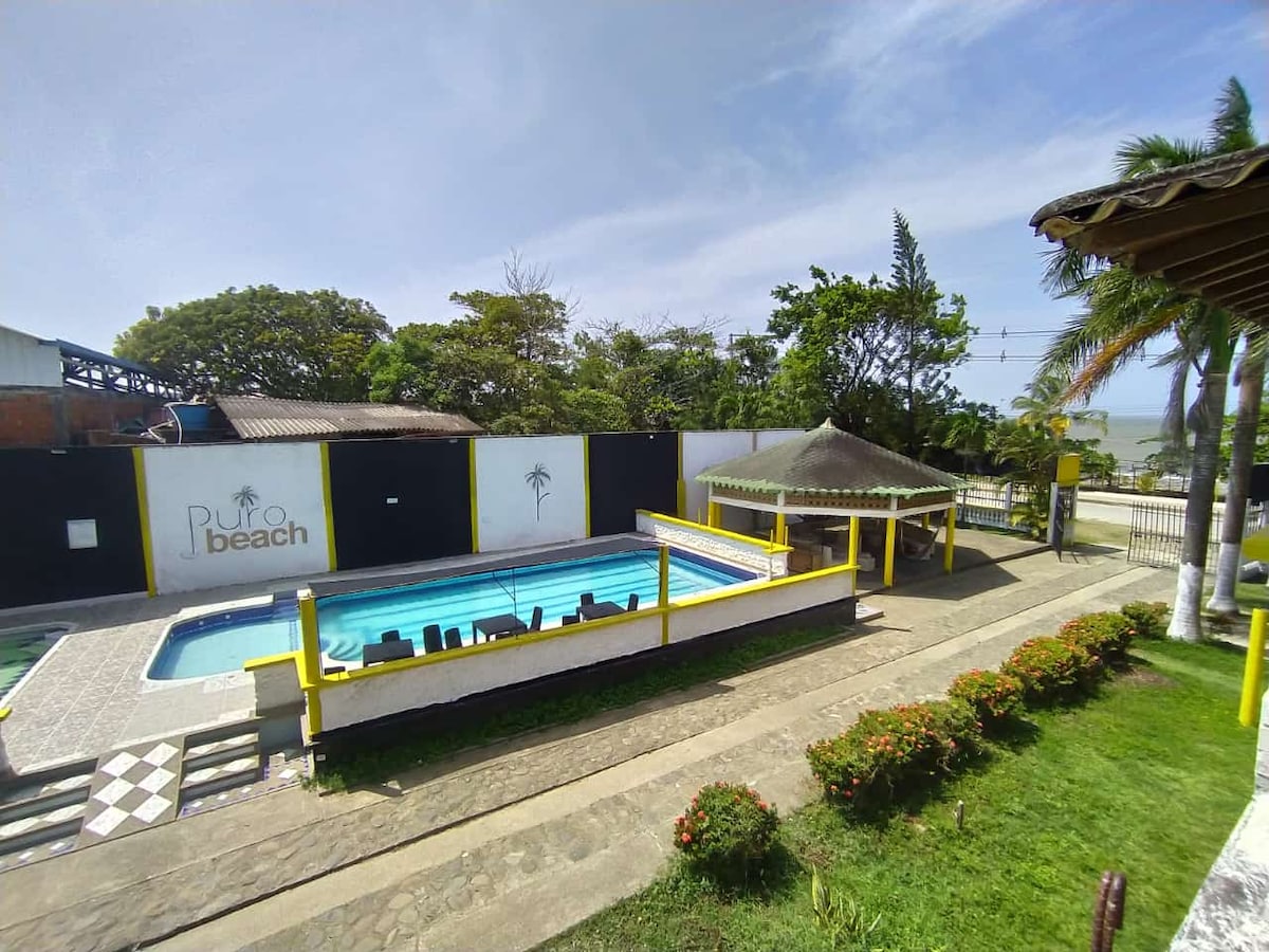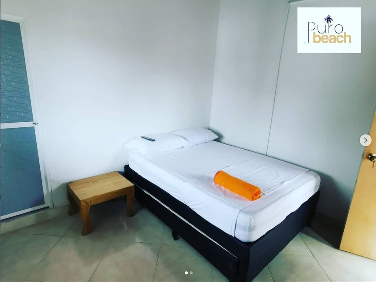 Hermoso paisaje caribeño colombiano, al frente del mar y la tranquilidad de las olas. Lugar apropiado para descansar, relajarse y disfrutar solo, con la pareja o familia y amigos. Habitaciones nuevas, con todos sus elementos y un bar en la terraza del tercer piso con una espectacular vista al mar.