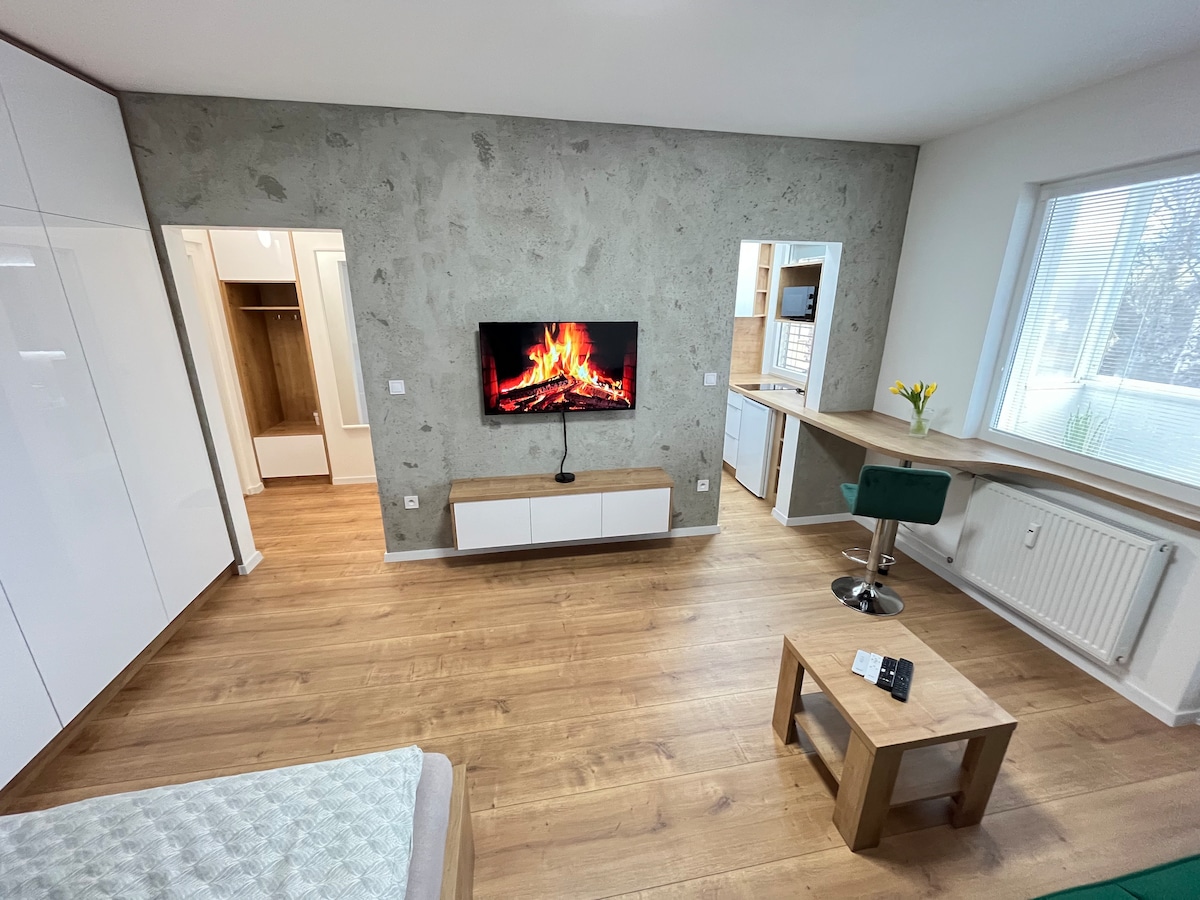 Pozývam Vás do moderného 1-izbového apartmánu, ktorý sa nachádza len 9 minút chôdze od hlavného námestia v Martine. Kompletne zariadený, s vybavenou kuchyňou, základnými potrebami na varenie aj pranie. Dvojlôžková posteľ pre váš komfortný spánok, smart TV a WIFI. Loggia s výhľadom na Malú Fatru. Bezplatné parkovanie priamo pred bytovým domom a celé centrum mesta dostupné v pešej vzialenosti. Byt je ideálny pre jednotlivcov, páry alebo biznis cestujúcich, ktorí hľadajú bývanie v Turci.