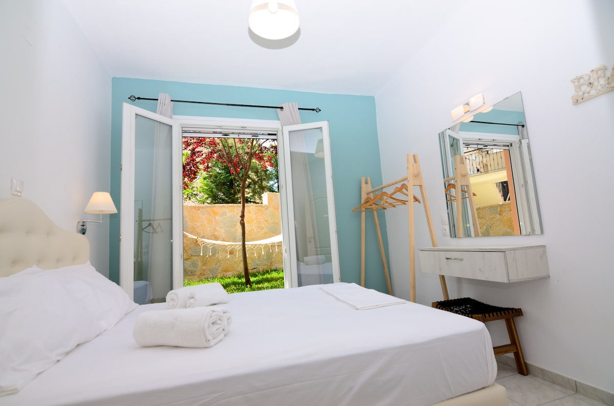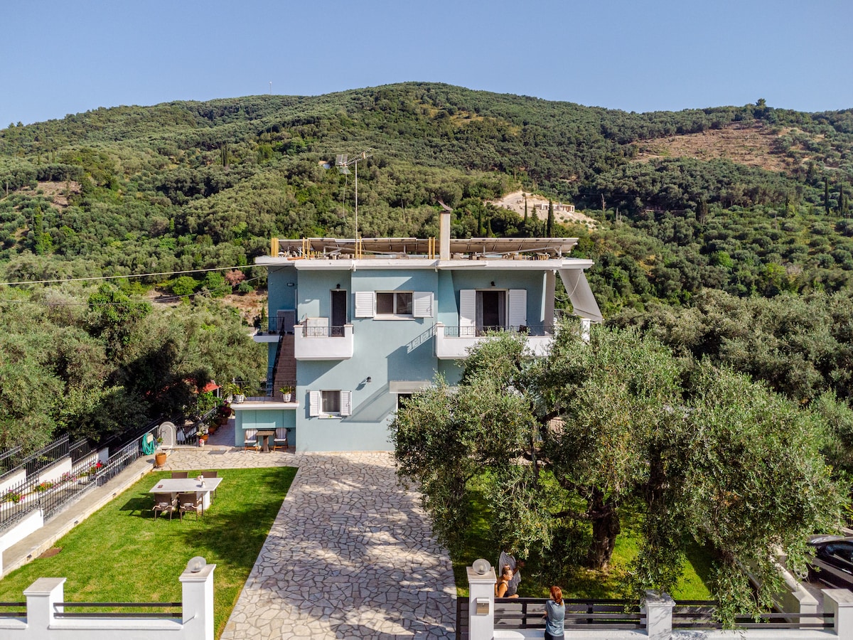 Μοντέρνο διαμέρισμα σε ήσυχη καταπράσινη περιοχή της Πάργας, μόλις 10 λεπτά με τα πόδια από την παραλία και το κέντρο της πόλης. Διαθέτει εξοπλισμένη κουζίνα με δυνατότητα ετοιμασίας γευμάτων, μηχανή espresso,βραστηρα και τοστιέρα. Με king size κρεβάτι και καναπέ- κρεβάτι 1,40×1,90 (με ανώστρωμα memory foam) για 3 ενήλικες ή 2 ενήλικες και 2 μικρά παιδιά. Με μεγάλο μπαλκόνι με θέα στο βουνό και κήπο γεμάτο δέντρα και λουλούδια. Ιδιωτικό δωρεάν πάρκινγκ και Wi Fi στο χώρο του διαμερίσματος