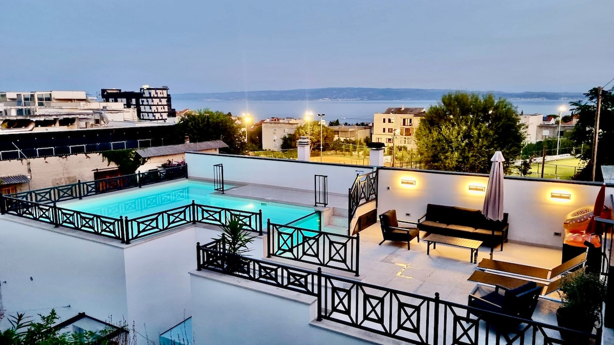 Villa White – a brand new luxury villa in Podstrana with amazing panoramic views of the entire Split Bay area and the islands. The property consists of 4 rooms with en-suite bathrooms, plus one additional toilet, a kitchen dining and living area, a game room with table tennis and darts, a garage, and an outdoor heated infinity pool with hydromassage. There is free private outdoor parking for 3 cars, a one-car garage, free WiFi. The property is non-smoking. The whole villa and every room are A/C.