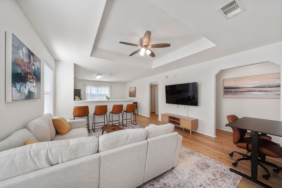 Perfect for families, business travelers, and event visitors, this home offers convenience, cleanliness, simplicity, comfort, and Texas charm all in one. —Welcome home the TEXAS way! 🤠 📍Nearby Fort Bend Epicenter– 6min Fort Bend Fairgrounds– 5min Nearby Nature Park– 5min Brazos Town Center– 10min The Diamonds Daily Park -15min Smart Financial Center– 15min Downtown Houston– 45min NASA – 50min FIFA2026-NRG 40 min 🏡 Amenities 60” Smart TV’s Fiber high-speed Wi-Fi La-Z-Boy Recliner Desk