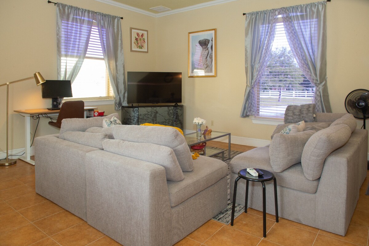 Your family will be close to everything when you stay at this centrally-located place in the heart of small town Boling Tx. You will feel right at home with its modern, clean, and clutter free style with sprinkled in farmhouse touches. Come escape the busy life and relax after a long day! *Please bare with us, Hurricane Beryl wasn't friendly, the apartment located next door is covered with a tarp due to its damage, we are working diligently to get everything back to normal after the storm.