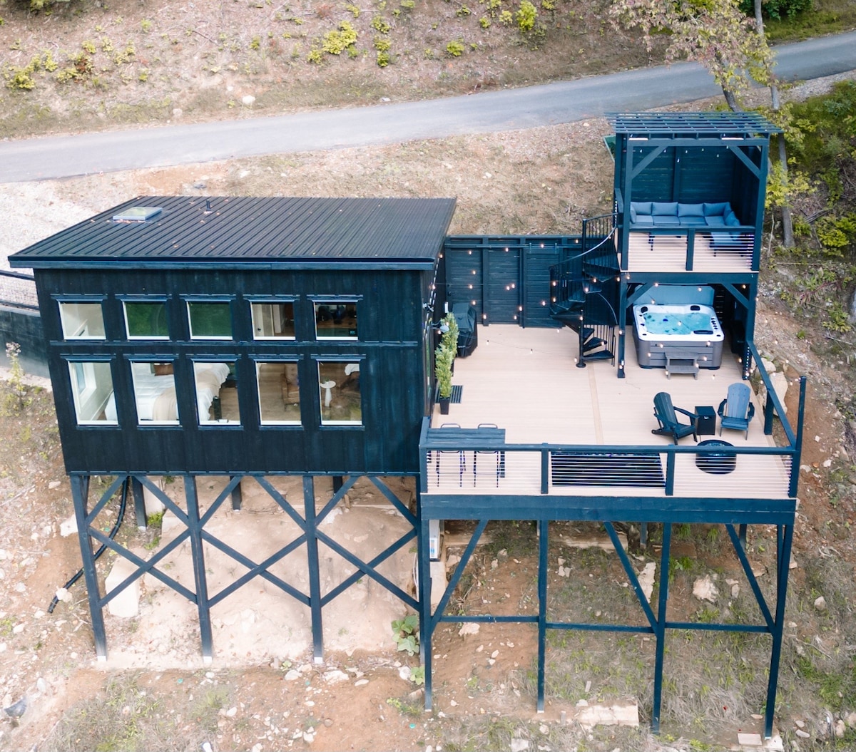 Discover a gem just 9 minutes from downtown Dahlonega:an all-glass cabin nestled on 3.5 private acres in the heart of wine country. Experience floor to ceiling woodland views from every room. OMG! Located in a renowned cycling area, pedal your way through scenic routes from the door. Only 6 miles from the iconic Appalachian Trail, it's a fusion of luxury and natural beauty. Dive into world-class vineyards or seek unlimited outdoor adventure. An unmatched haven in Dahlonega's serene woods awaits.