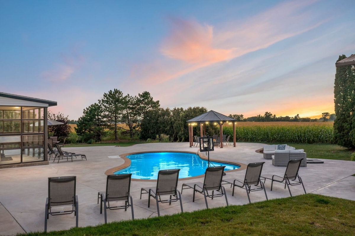 Relax at Sunset Oasis, where stunning lake views and sunsets set the tone for your stay. Sip coffee in the chef’s kitchen, paddle out in kayaks, grill lunch, and dine lakeside. In the evening, cozy up by the fireplace or gather around the firepit under the stars. Stream your favorite shows on the smart TV or explore nearby downtowns just minutes away. This stylish, updated luxury lake house is the perfect escape to unwind, reconnect, and create unforgettable memories.