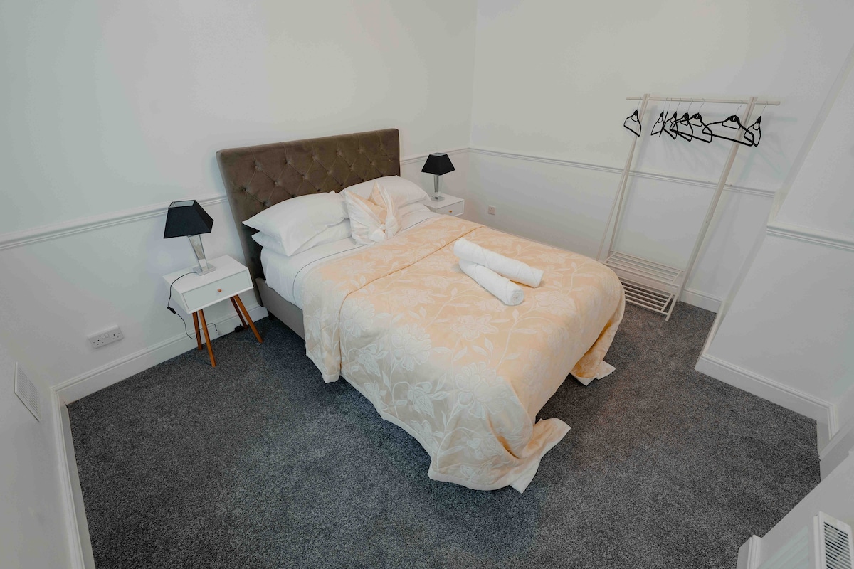 Unwind in our stylish central Ecclesall road two bedroom apartment. The apartment has everything you need to unwind and relax during your stay. With the lounge offering at 75" wall mounted 4k TV on a modern slatwall backdrop, dinning table with overhead mood lighting. Both bedrooms offer king size beds with Simba memory form mattresses. The kitchen has integrated appliances with coffee machine with complimentary pods. The bathroom has a large walk in shower with contemporary matt black features