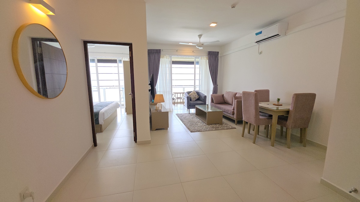 This stylish sky-high (14 Floor) offers seamless self-check-in with a smart lock system. This is your private beachfront escape, offering breathtaking views of both the ocean and beach. It is featured with a spacious ensuite bedroom, along with a fully equipped kitchen, private lobby, dining space, and a private balcony—perfect for soaking in the stunning coastal scenery. Wake up to panoramic ocean vistas, unwind in a serene setting, and enjoy the beauty of Uswetakeiyawa. 🌊✨