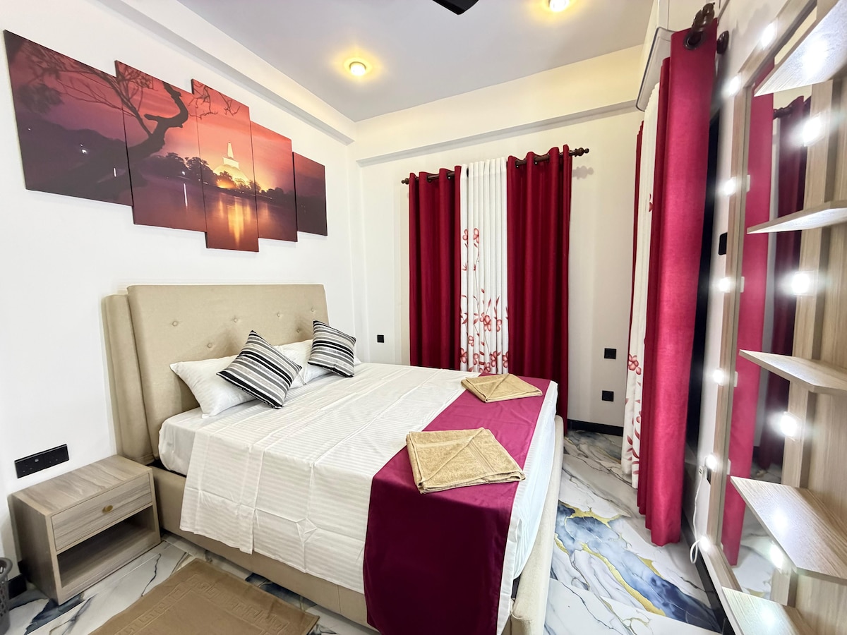 This stylish retreat is ideal for two guests, offering a cozy and convenient stay. Cetrally located just 10 minutes from the Kadawatha interchange, 35 minutes from the International Airport, and 13 km from Colombo. The space features a comfortable bedroom, a small living and dining area, and a chic kitchenette equipped with modern appliances. Enjoy the comfort of air conditioning, high-speed WiFi, and a secure neighbourhood with free parking. Perfect for a relaxing and hassle-free stay!