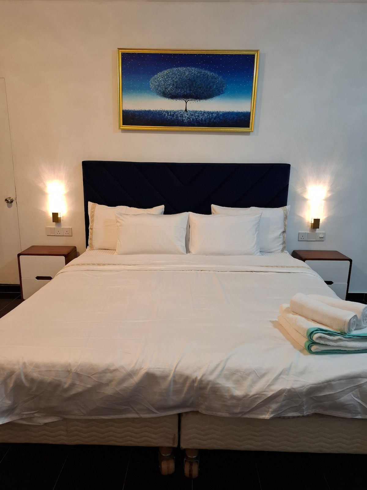 Start your mornings with coffee on your private balcony, savoring the stunning ocean views and the vibrant energy of Negombo. After a restful night in your comfy bed, unwind in the cosy TV lounge with free Wi-Fi, air conditioning, and 24/7 security providing all you need for a worry-free stay. Take a dip in the rooftop pool, dine at the on-site restaurant, or explore nearby cafes and seafood spots. Our apartment perfectly blends relaxation and convenience for an unforgettable stay in Negombo.