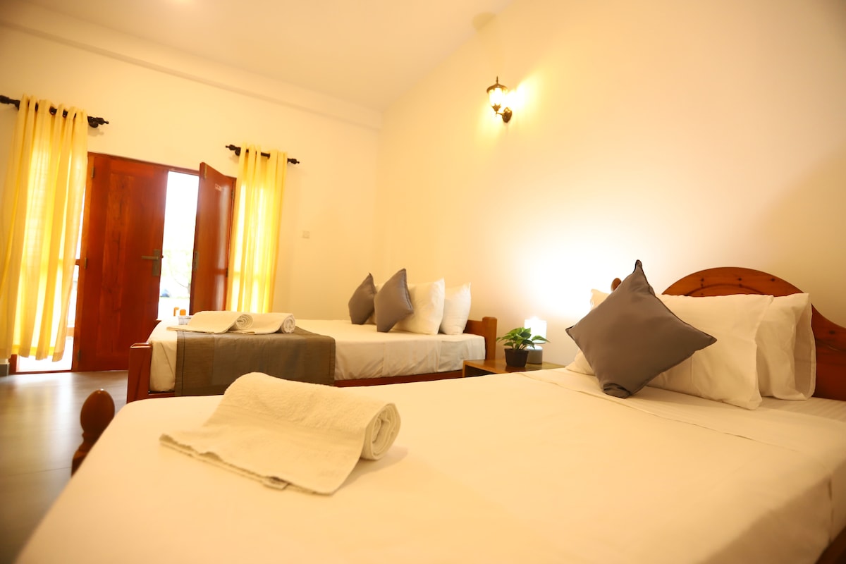 Discover the lush, eco-friendly sanctuary of Tekkawatta, located on the serene banks of Sri Lanka's Kelani River. Managed by the Gunasekera family's 5th generation, our property features teak, cinnamon, and coconut trees, offering a natural environment to unwind. Explore nearby historic sites, such as Korathota Raja Maha Viharaya and Kelaniya Raja Maha Viharaya, or relax by our pool and appreciate the beauty of nature. Come and experience the enchanting beauty of Tekkawatta today!