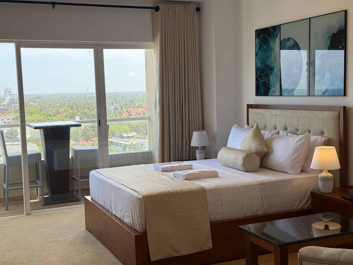 Start your mornings with coffee on your private balcony, savoring the stunning ocean views and the vibrant energy of Negombo. After a restful night in your comfy bed, unwind in the cosy TV lounge with free Wi-Fi, air conditioning, and 24/7 security providing all you need for a worry-free stay. Take a dip in the rooftop pool, dine at the on-site restaurant, or explore nearby cafes and seafood spots. Our apartment perfectly blends relaxation and convenience for an unforgettable stay in Negombo.