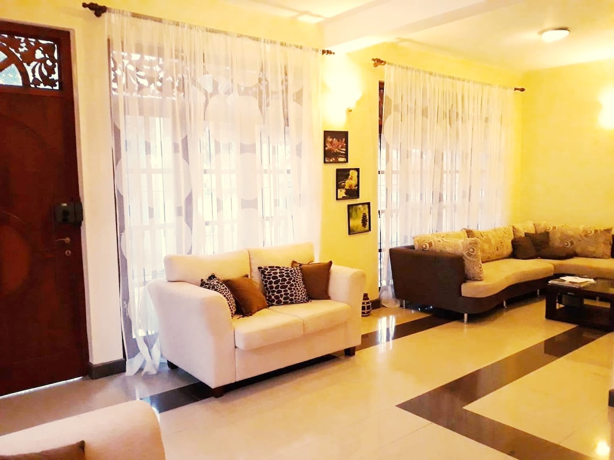 2 story house with a beautiful garden. 7 bedrooms. All bedrooms have en-suite private bathrooms + hot water. 2nd floor can use as 2 separate apartments (2BR & 3BR). Fully equipped kitchens available in both floors. 15km to Colombo city (Fort railway station). 30 to Airport. Directs buses go to Colombo available every 5 minutes. Supermarkets, restaurants within 500m Very quiet and a safe place Long term ok Renting full house ok ***Please read all information, especially house rules.