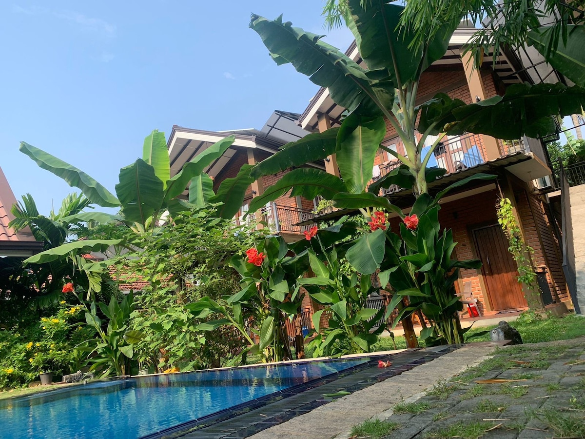 Staying with us means first relaxing and second getting used to the SriLankan clima. Our home is just 7 minutes drive away from the Airport and still far enough to not hear any noise. Enjoy your first or last days in Srilanka and start your vacation relaxed and unstressed. You will have time to rethink your route and get local tips while beeing around my family. Staying with us also means that you will enjoy a free pick up or drop of service to the airport and daily served breakfast with love