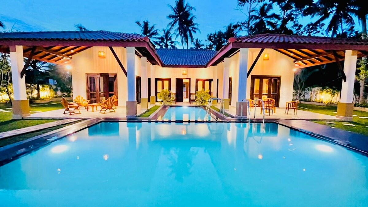 Relax in a stylish 2-bedroom villa at Santorini Resort, Negombo. Enjoy a fully equipped kitchen, washing machine, AC rooms, and a serene resort setting. Just minutes from the beach and dining. Conveniently located 12 km (15 mins) from Bandaranayake Airport and 37 km (45–60 mins) from Colombo. Perfect for families or couples seeking comfort and elegance by the coast