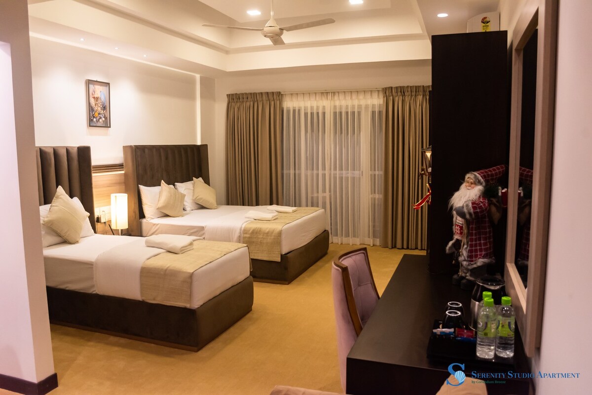 Start your mornings with coffee on your private balcony, savoring the stunning ocean views and the vibrant energy of Negombo. After a restful night in your comfy bed, unwind in the cosy TV lounge with free Wi-Fi, air conditioning, and 24/7 security providing all you need for a worry-free stay. Take a dip in the rooftop pool, dine at the on-site restaurant, or explore nearby cafes and seafood spots. Our apartment perfectly blends relaxation and convenience for an unforgettable stay in Negombo.