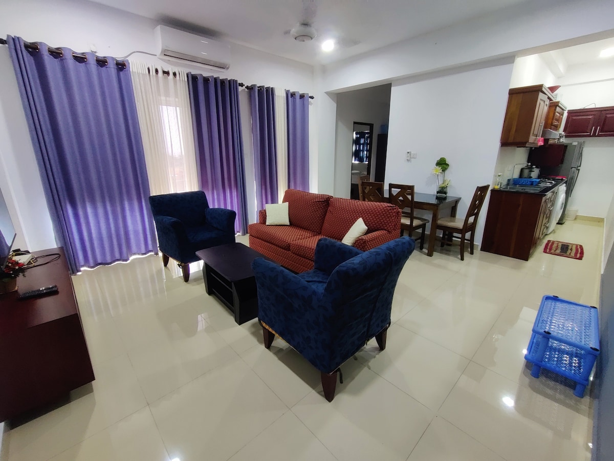 Start your mornings with coffee on your private balcony, savoring the stunning ocean views and the vibrant energy of Negombo. After a restful night in your comfy bed, unwind in the cosy TV lounge with free Wi-Fi, air conditioning, and 24/7 security providing all you need for a worry-free stay. Take a dip in the rooftop pool, dine at the on-site restaurant, or explore nearby cafes and seafood spots. Our apartment perfectly blends relaxation and convenience for an unforgettable stay in Negombo.