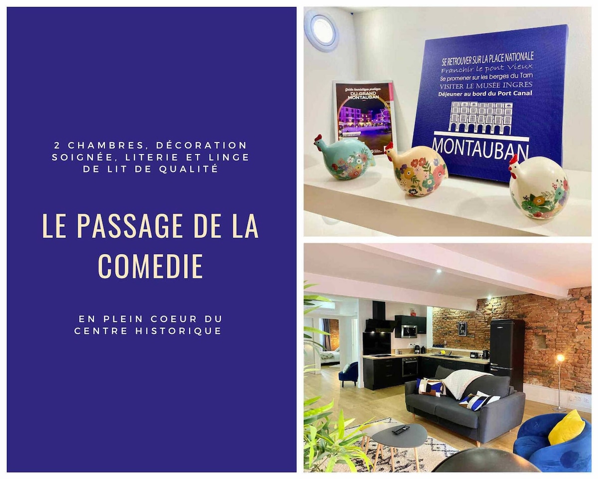 Appartement de charme, calme, dans un immeuble ancien entièrement rénové, situé dans le centre historique de Montauban, il dispose d'une terrasse privative avec vue sur le Tarn et le pont vieux. A 50 mètres du Musée Ingres Bourdelle, à 150 mètres de la Place Nationale de ses lieux de vie, des animations du cœur de bastide, cet appartement est idéalement placé pour découvrir Montauban et son Histoire. Très bien équipé, il est aussi adapté aux professionnels.