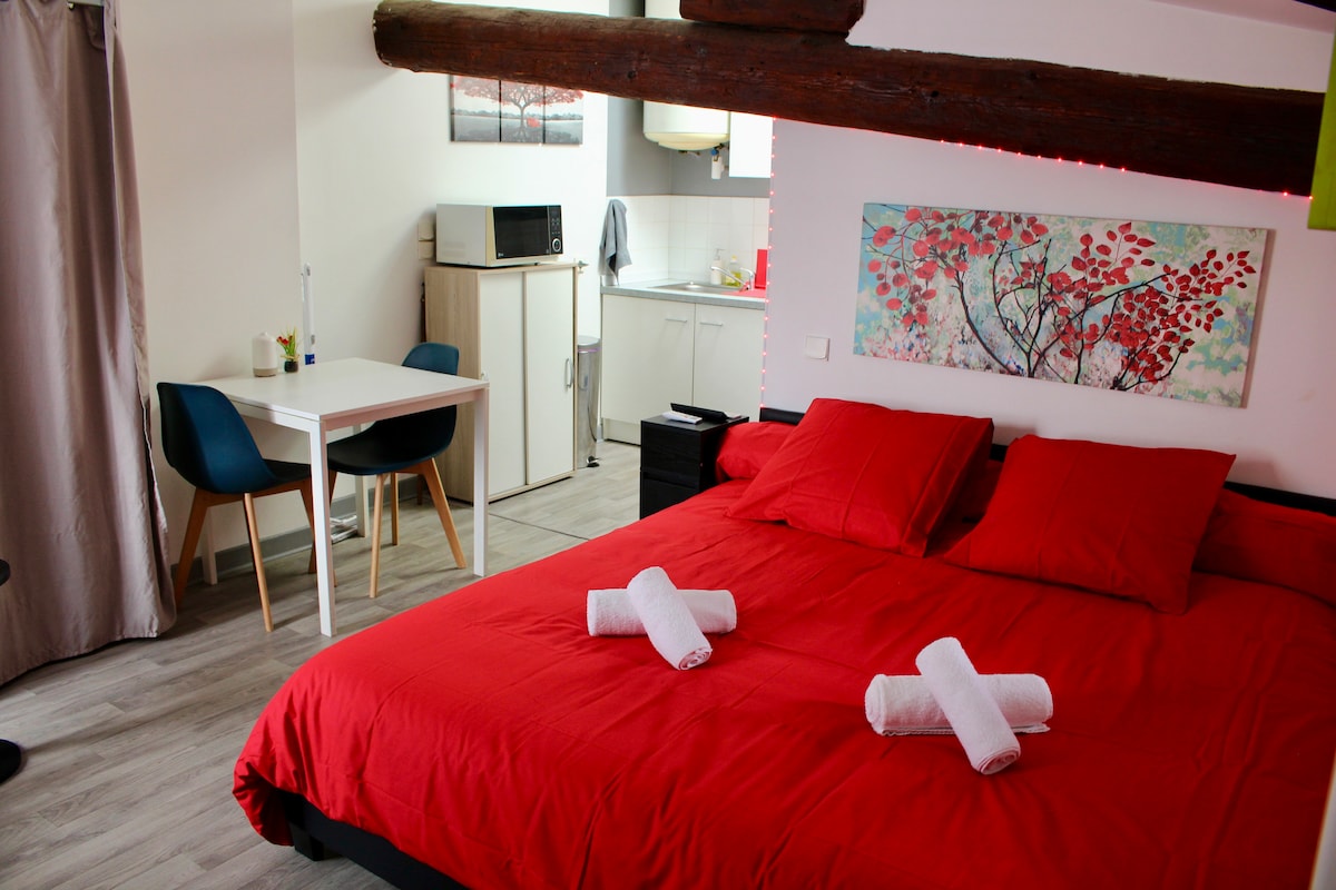 Bienvenue au Loft de la Mandoune Appartement avec climatisation . Deuxième et dernier étage , ce grand T2 de 60 m² est situé dans l hyper centre ville de Montauban. A 5 mn à pieds de la place nationale . Décoré avec soins , cet appartement vous fera vous sentir comme à la maison . Il pourra vous recevoir seul ou en couple ,pour une escapade dans notre région ou pour un déplacement professionnel Doté d une boite à clé , cela vous permettra d arriver de manière autonome