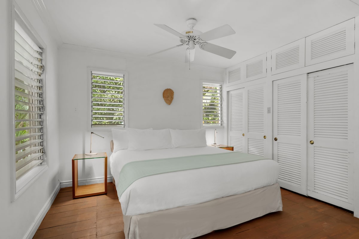 Located across the street from our lobby, the homelike White House Suite is the perfect setting for a dream island escape with plenty of space for every guest. The upper-level suite has a master bedroom with a king bed opening to the living and dining area, as well as a separate bedroom with a queen bed.
