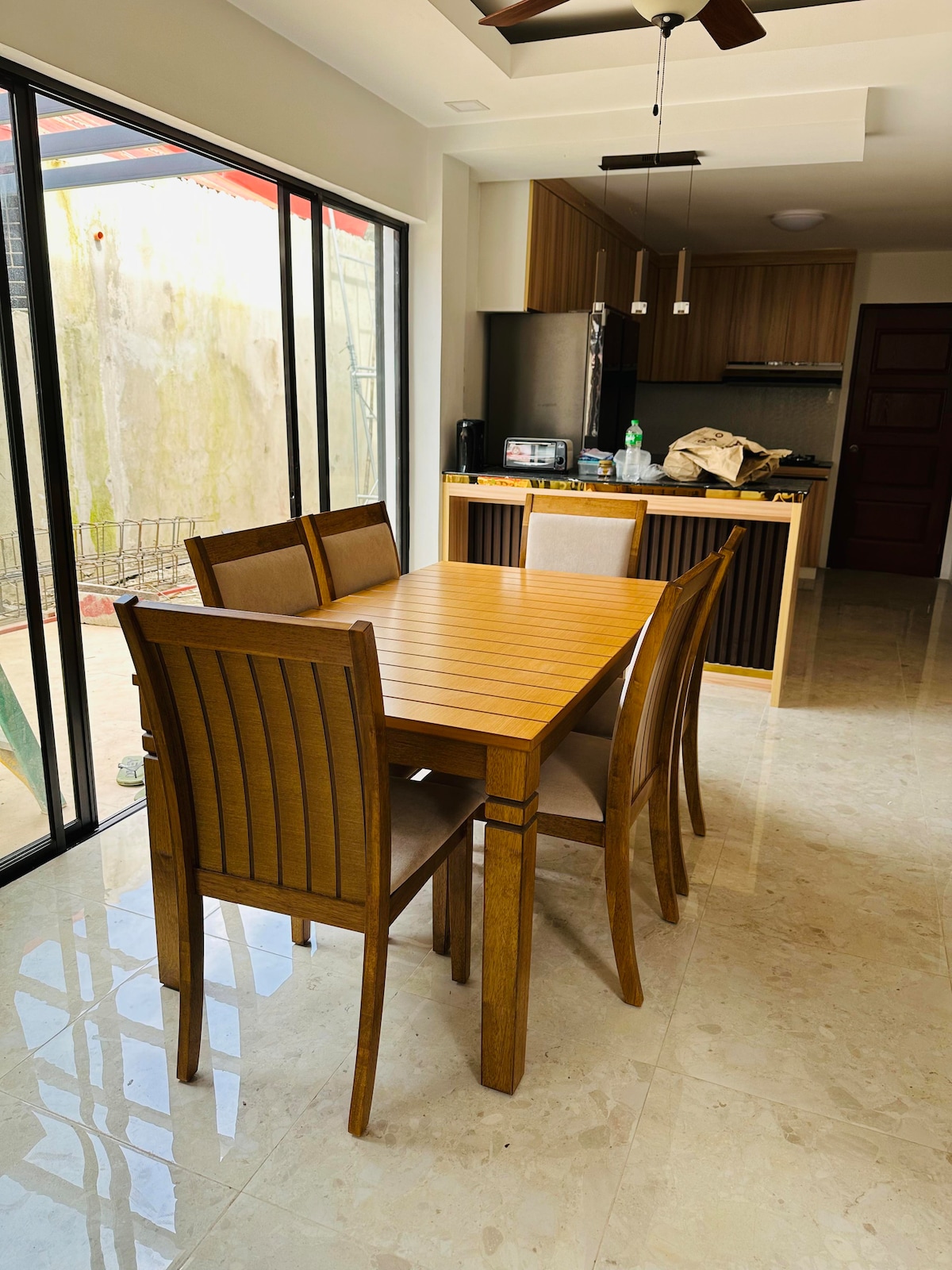 This home away from home is clean, comfortable, peaceful, and beautifully decorated. It has three bedrooms, and two full-size bathrooms. All three bedrooms have air conditioners, as well as the living room. The kitchen is well equipped with appliances and cookware. The fiber Wi-Fi is fast and reliable, which is great for remote work. It is located in the quiet neighborhood, with a 24/7 security guard. It is a seven to eight minute drive to the new government center, restaurants, and malls.