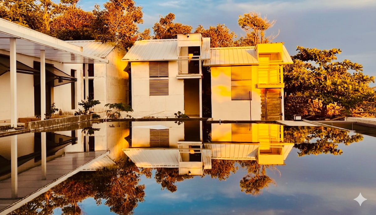 Perched on a cliff, this solar-powered sanctuary offers a rare 360° view of both sunrise and sunset. Designed with eco-minimalism, our oversized shaded windows invite natural sea breezes to cool the two-story loft. Experience the mesmerizing infinity pool that mirrors the twilight sky. Sustainably powered by the sun to ensure a worry-free island getaway. From the open terrace to the reflection pool, every corner invites deep peace. Luxury meets the elements. Your private horizon awaits.