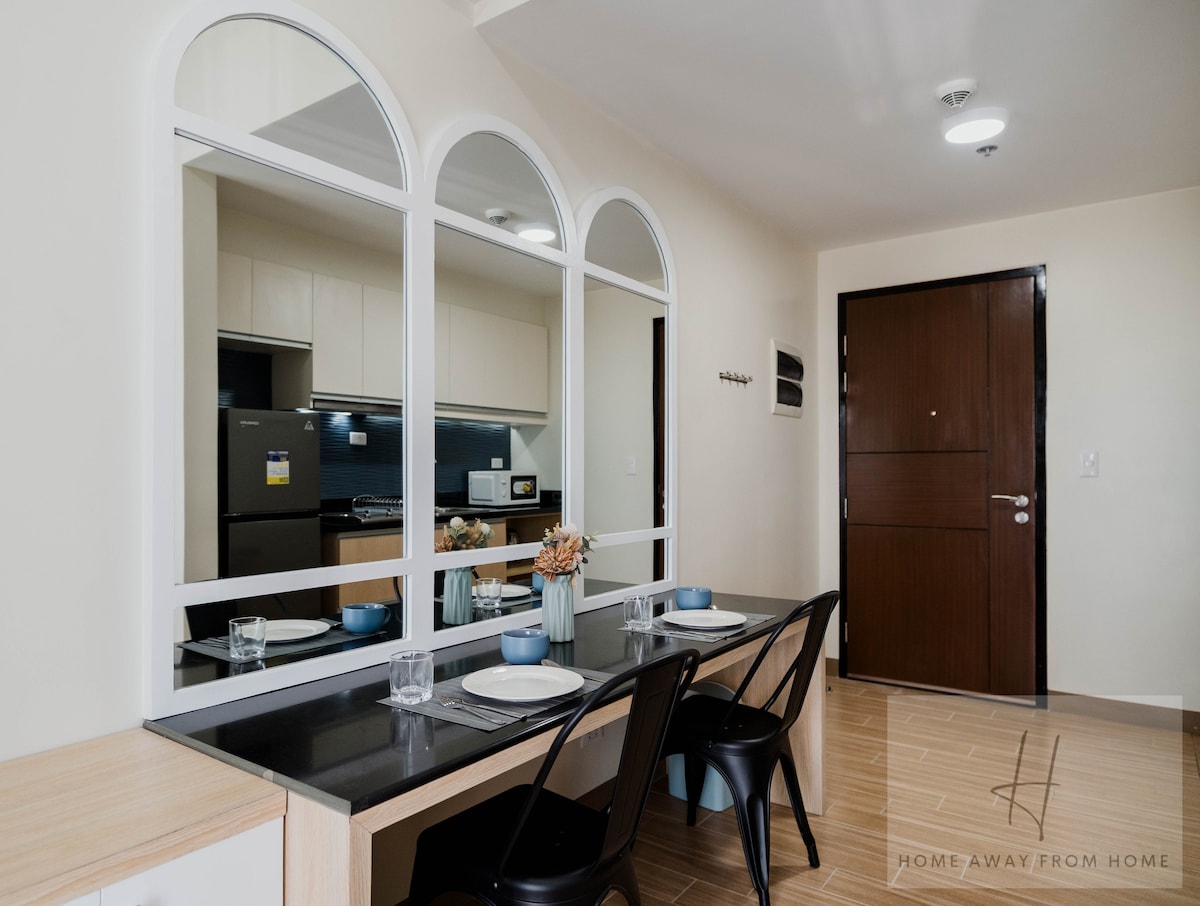 Enjoy your stay in this cozy and stylish studio unit at Mesavirre Garden Residences, located at the heart of Bacolod City. The unit is equipped with the following that you can fully utilize! - 50-inch smart tv with Netflix and HBO GO - WiFi (unlimited) @300mbps - air condition - refrigerator - rice cooker - electric kettle - electric stove - shower heater - bidet - kitchen utensils and tableware - iron - hair dryer - slippers - welcome kit - honesty store - card and board games