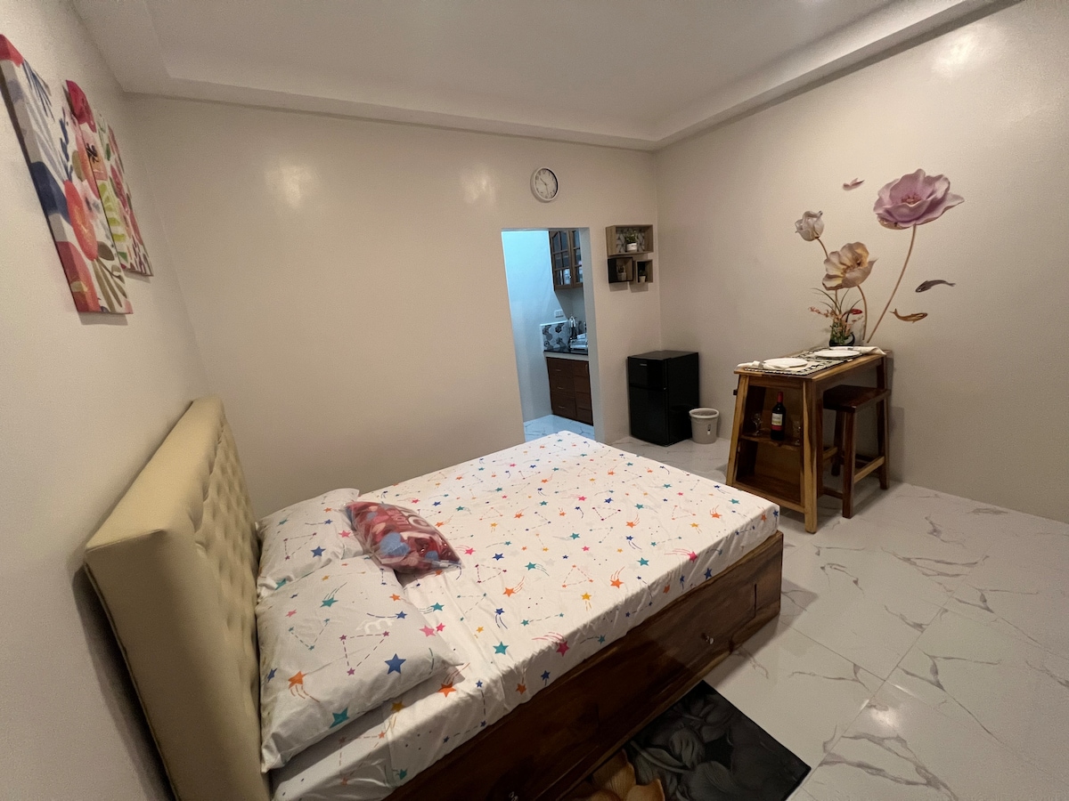 A studio type Cabin for 4 guests, newly built and furnished with nice nice interiors. Located in a quiet and safe subdivision, yet very near to Dumaguete City. - 100 meters away from Ace Doctors Hospital and 150 meters away from National Higway( Daro); 1 km from downtown Dumaguete City/Siliman University and just 2 kms from Dgte Airport. This place has functional kitchen, hot and cold shower, flat TV, cable, window type AC, WiFi, microwave, purified water, toaster and refrigerator.