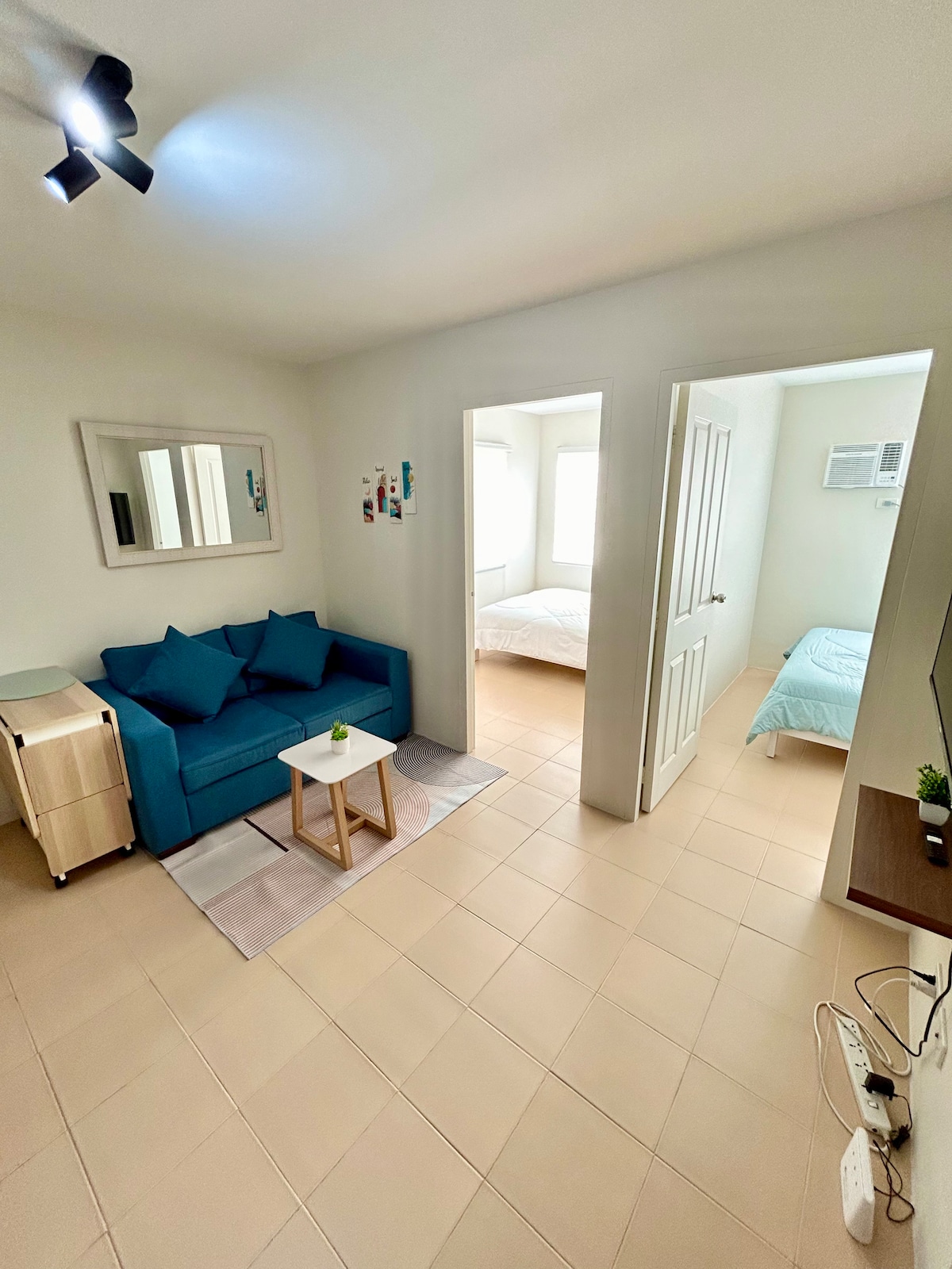 Marina Blu presents a comfortable and stylish condominium unit in Building A at Marina Spatial, featuring 2 bedrooms and one bathroom. Conveniently located near famous bars and restaurants such as Hayahay, Lantaw, Cafe Racer, TIKI Bar, and HYDE! Enjoy the convenience of private parking and access to the gym, pool, and other amenities upon request. Plus, stay connected with WiFi access and indulge in entertainment with Netflix!