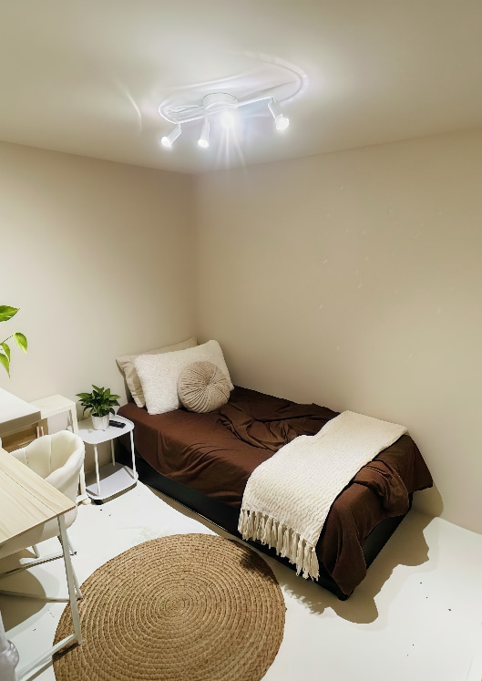 [奶油在奶茶裡] 可愛奶油風格侘寂風,幾個房間的小民宿,住的開心 🧁用奶油風包圍你的心🤍 A房 溫馨雅緻單人加大床 房間水冷風扇 ,客人好評中 浴室在廚房旁邊,價格實惠 客人來都說覺得真的融化在奶油中,睡得很好 老宅改建,用60分的期待來住會獲得85分的開心 完美主義者不適,適合感恩優惠價格又簡便輕旅的你 🧁奶油色、能降低大腦的警覺度,讓人放鬆、安心 減少焦慮、幫助情緒穩定,每天都住在溫柔中 「侘寂(Wabi-Sabi)」的核心是:不完美也是一種美 - 表面上的粗糙、時間留下的痕跡,都在提醒我們人生不需要完美 接納不完美 - 讓眼睛休息,也讓心有空間容納自己是一種心靈練習 🚝 四分鐘到昆陽捷運站 捷運站旁有很多食物、商家 ➡︎ 捷運往右信義區 全台灣第一名的都市是台北,台北第一名的區域是信義區好逛 ➡︎ 捷運往左南港站 最新開幕的LaLaport 百貨好玩 🧁睡在奶油中 奶油風廚房 刀具 浴室 可愛的旅店 陪你 - 優惠價格中,記得帶你的毛巾跟水喔~ 租用毛巾低價$100 (US$3.5)租用 住30天贈您機場接送