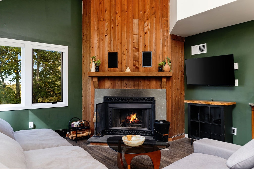 Escape to a spacious, colorful home off the Brew Ridge Trail with oversized windows, mountain views, and plenty of room for groups or couples. Cook in a stocked kitchen, then relax by the fire pit or grill out and unwind on the deck while the dogs enjoy the fenced in yard. Accessible bedrooms and bathrooms on the main floor make it easy for everyone to enjoy. Perfectly located near Wintergreen Resort, Skyline Drive, breweries, wineries, vineyards, hiking, biking, and golf.