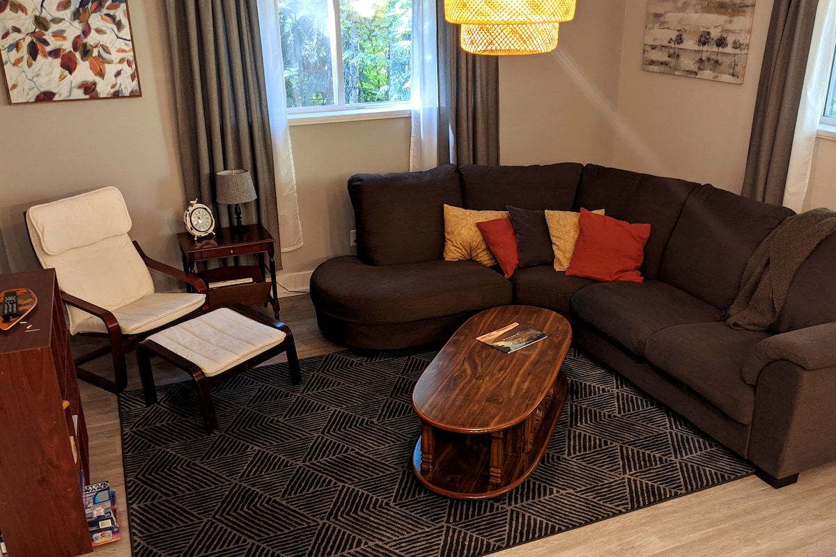 Welcome to the Rosemont Garden Suite. This stylish, modern home is a great getaway tucked into a quiet neighborhood on a dead end street. This private suite in our home offers 2 spacious and cozy bedrooms, full size in suite laundry as well as a kitchen with all the basic amenities. Our Wi-Fi and in suite desk make this a remote workers dream! The neighbourhood is very private but minutes drive from the downtown core. Free street parking on site.