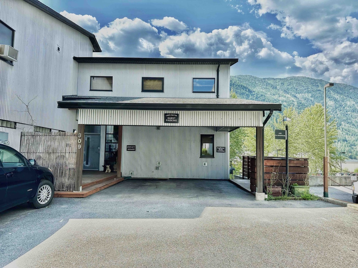 Soak in gorgeous mountain views in this boutique retreat, just a short, easy walk to shops on Baker St. Ideal for guests who value comfort, calm & convenience! Railtown Suite offers relaxed comfort with a quiet nod to luxury. French doors invite sunlight to flow through the rooms, creating a warm, light & natural feel. Soft lighting invites a calm and quiet beauty - a place to relax & connect ✔️ 5 min walk to Baker St ✔️ Free parking ✔️ Quality mattress & bedding ✔️ Gorgeous mountain views🌟
