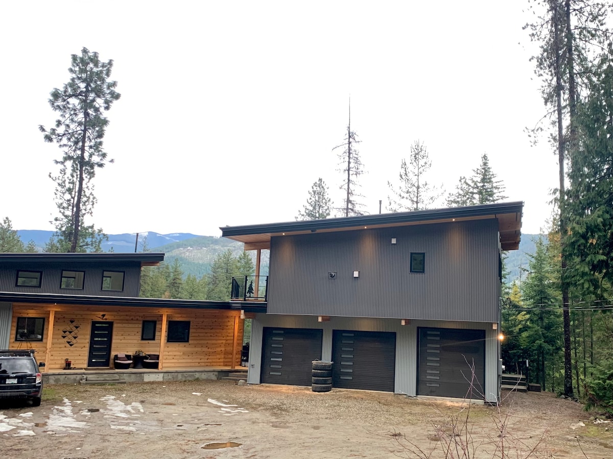 ***Sorry friends we cannot host your dogs*** Modern cabin, ideal for nature lovers, skiers and snowboarders, snowmobilers, mountain bikers, hikers, or those exploring nearby Nelson. The sun-drenched deck looks out onto a stunning ponderosa pine and sits just steps from an active wildlife game trail. Set on seven peaceful acres, the property is shared with elk, deer, rabbits, two resident ravens, and the occasional wild turkey—offering a truly immersive mountain experience.