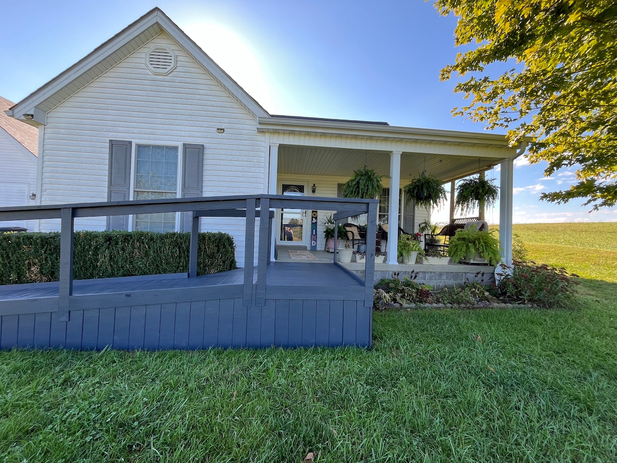 Enjoy beautiful sunrises and sunsets on a quiet country road only minutes from downtown Bardstown. Enjoy the sounds of nature on our large outdoor patio. Relax in the Hot tub after a day of touring the area or enjoy visiting with our horses who may show up at the fence for a peppermint or carrot. This house is great for family get aways or couples wanting to traveling together.
