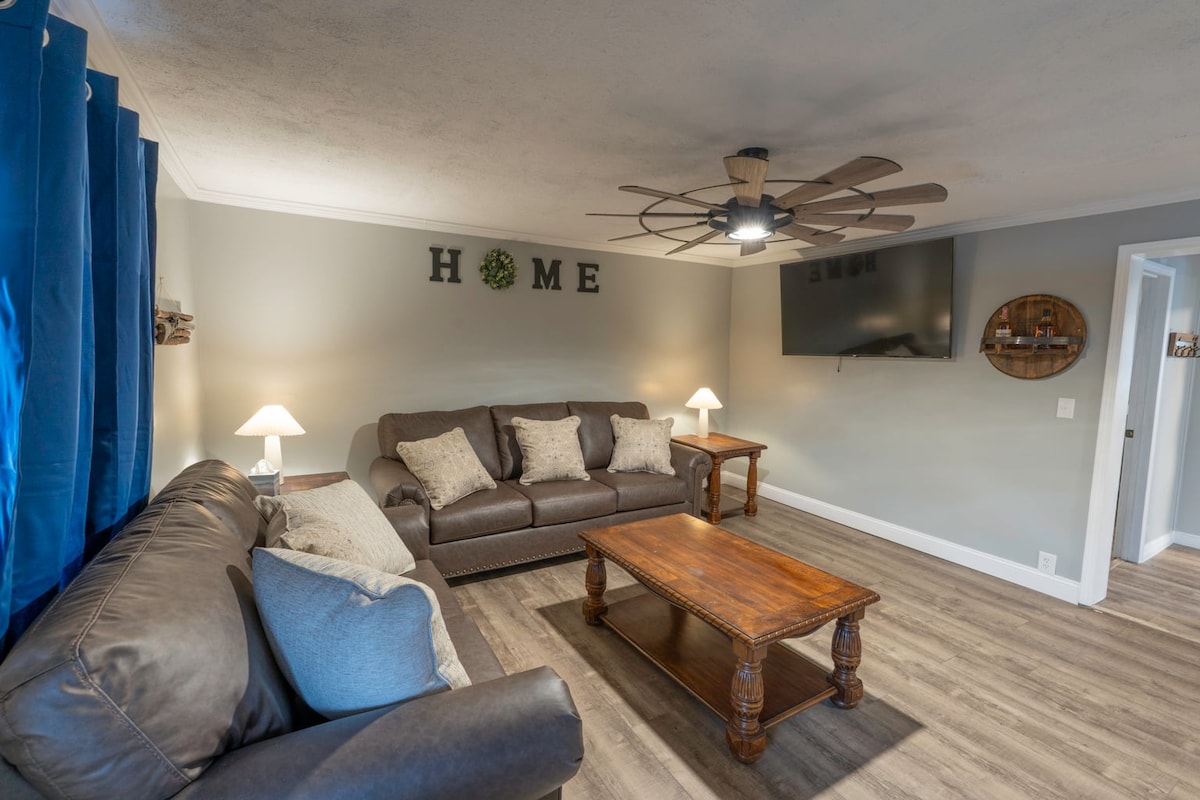 Be our guest! Have fun with the whole family at this modern and unique place. Brand new and ready to entertain you and your family. Located close to our family home but on the East side of our Metal Barn. It offers your own private parking and private front and back porch. minutes from the Bourbon Trail. You will enjoy all the fun features like the spiral steps that lead to the barn loft, a chow bucket trolly system, the game wall, gas fireplace, a pull out couch and so much more!
