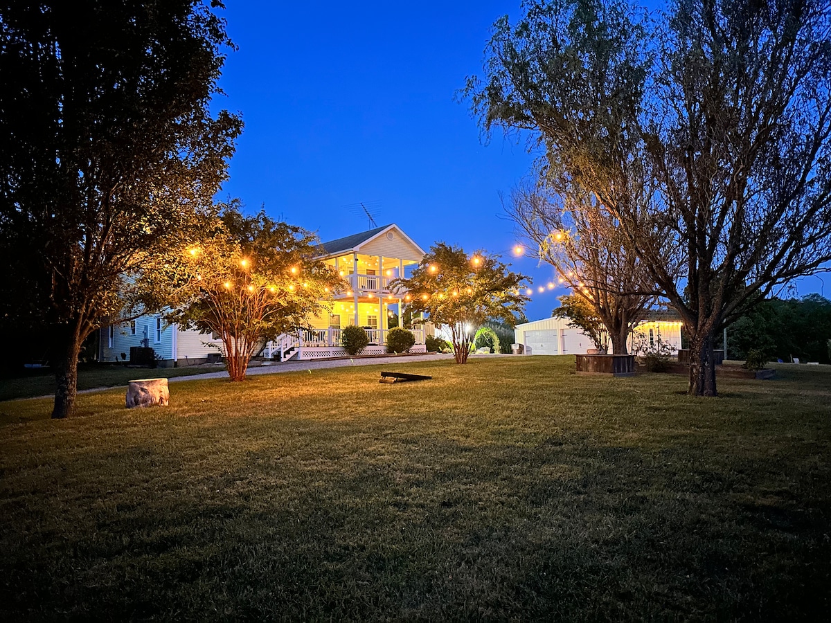 Amenities! You don't need to pay more to get the BEST! My guests are amazed at all the Farmhouse has to offer. The home is on a 3rd generation family farm & has 4 huge bedrooms for your upmost privacy. It is definitely in the country yet only minutes from town. Surrounded by pastures, your only neighbors are the grazing cows. It has 2 wonderful porches, firepit area, renovated garage to hang out in, 320 acres to roam on & 2 fishing ponds. Smoking is allowed outside/2 pet max