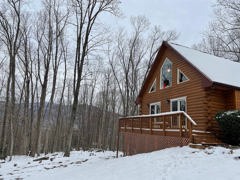 This cozy and charming cabin was originally built as a country store in 1930 and has been updated with all the modern comforts. NEW in 2025- bathroom fully renovated with walk-in tiled shower! The cabin has a front porch perfect for sunset, back deck with gas grill, full kitchen, king bed, queen sofa bed, mountain views, and ten acres to explore. Come unplug and get away from it all! Tucked away on the “quiet” side of the famous route 151, we are minutes from trails, breweries, and more!