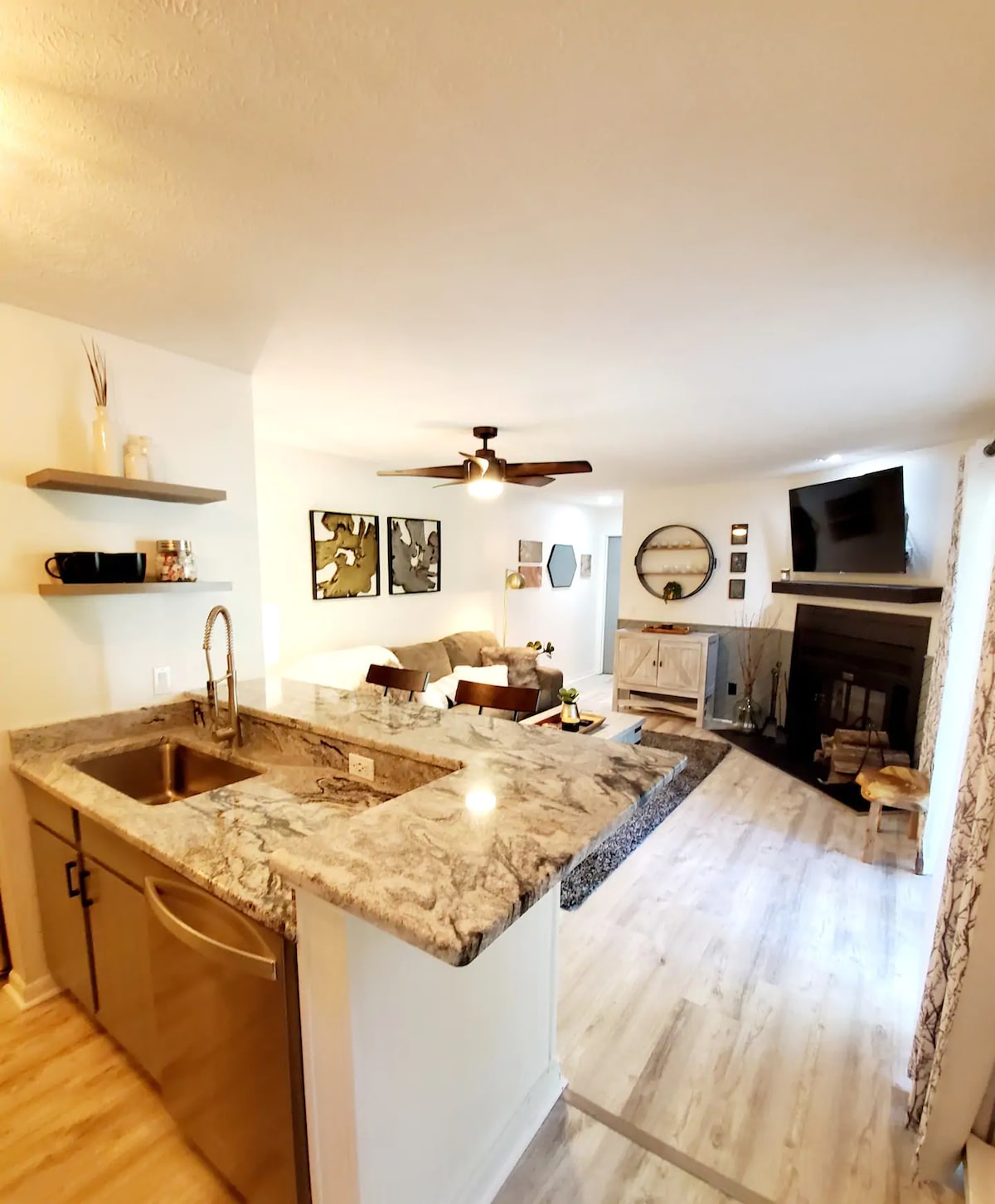 Escape to a spacious, colorful home off the Brew Ridge Trail with oversized windows, mountain views, and plenty of room for groups or couples. Cook in a stocked kitchen, then relax by the fire pit or grill out and unwind on the deck while the dogs enjoy the fenced in yard. Accessible bedrooms and bathrooms on the main floor make it easy for everyone to enjoy. Perfectly located near Wintergreen Resort, Skyline Drive, breweries, wineries, vineyards, hiking, biking, and golf.