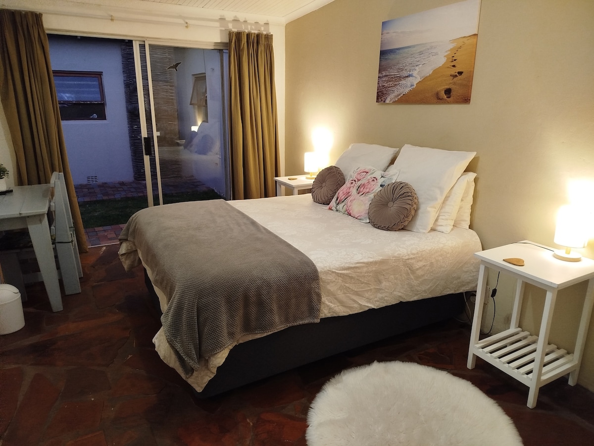 Ideal for short stays. Secure off-street parking. Convenient position - 5 mins from Airport, St George's Park, Grey schools. 7 mins to Beachfront. 35 mins to Addo Elephant Park. Located in the garden of a family home and the owner's art studio. Full en-suite bathroom the kitchenette has a kettle, microwave and fridge. Queen double bed, free Wifi, solar electricity. Extra single mattress can be placed on the floor at no extra charge. Cafés, shopping centre within 5 minutes walking distance.