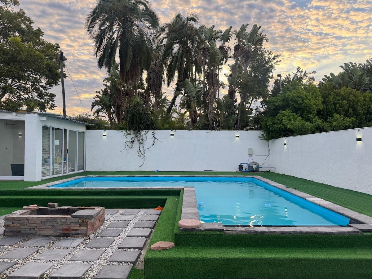 Private 3-suite boutique unit, Walmer Gqeberha. Enjoy exclusive use of a stylish space with 3 private suites, 2.5 bathrooms, a full kitchen, dining area, and comfortable lounge — ideal for families, business groups, or sports teams Relax in a premium outdoor area with a pool, jacuzzi, sauna, and fire pit. Includes air conditioning, high-speed WiFi, Smart TVs, and workspace areas. Minutes from the airport, top schools, golf courses, restaurants, and sports venues. Private unit — no shared access.