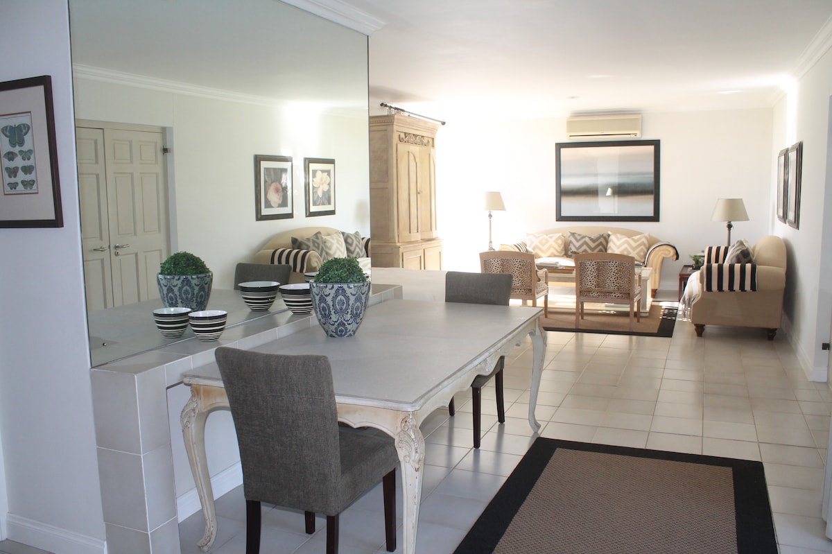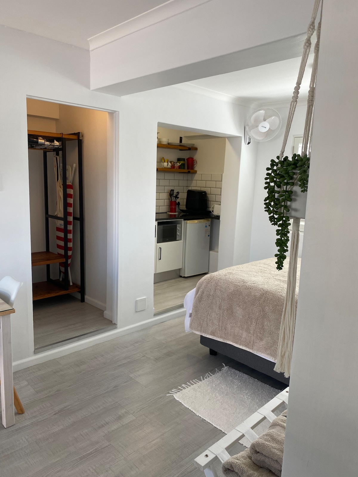 Stylishly decorated neat open plan bed, small lounge/dining area, bathroom, small well equipped kitchen for light cooking. Situated in quiet neighbourhood. Safe parking on premises behind motorised gate Solar/inverter not affected by load shedding. Limited LDSTV, Netflix 1km to beach, top restaurants, schools, boardwalk shopping centre & casino which makes it an ideal stay for IronMan, cycle races, Park Run, school, water- and other sport events on beachfront. 10 min/5km drive from airport