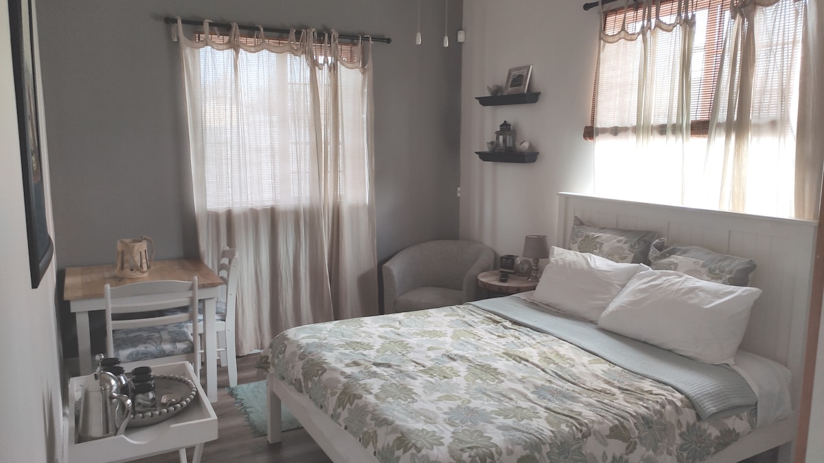 Ideal for leisure & business travellers, this place is separate to the main home, private, peaceful & well equipped. Clean, cosy & very affordable, located in the safe suburb of Kragga Kamma Park, the bedroom is airy, bright with a comfy queen XL bed & bathroom. The room contains a fan/heater, microwave, fridge, kettle, coffee machine, cutlery & crockery. Solar panels means no loadshedding. Enjoy 150 Mbps fibre uncapped wifi, USB power points & self service check in at a time to suit you.