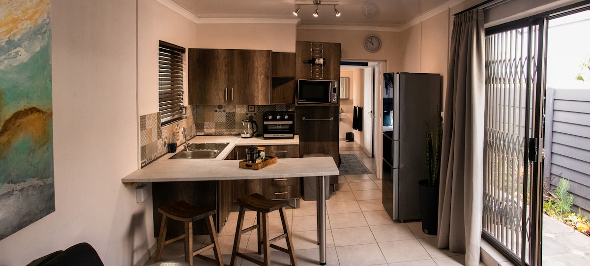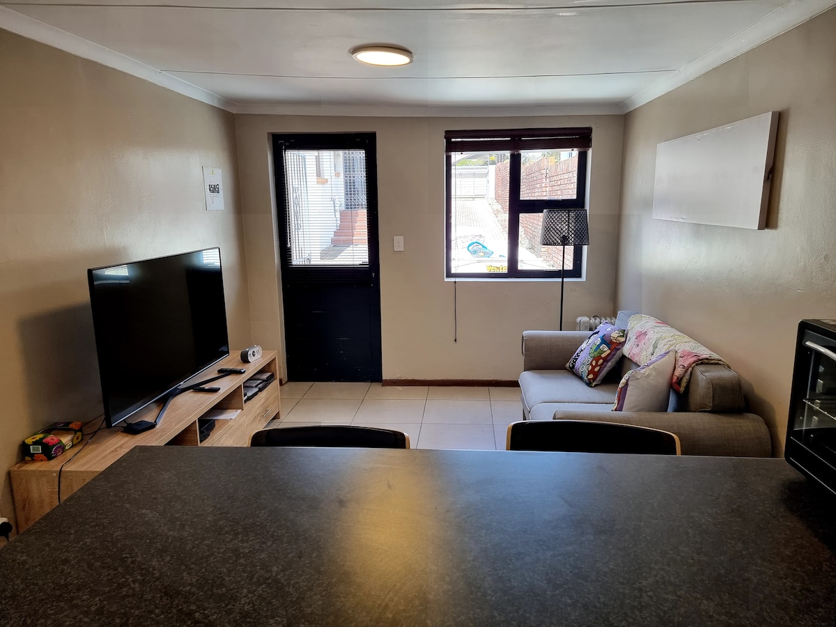 Enjoy a peaceful stay in this private garden flatlet, perfect for both short and extended stays. Centrally located just 7 mins from the airport and top schools like Grey and Collegiate, and 9 mins to the beachfront. Addo Elephant Park is only 35 mins away—ideal for day trips! 🛏 Queen-sized bed 🛋 Sleeper couch (¾ bed size) 🍳 Fully equipped kitchen 📶 Free Wi-Fi 🚗 Secure off-street parking Located on a quiet, family-friendly property, you'll enjoy comfort, convenience, and a touch of home.