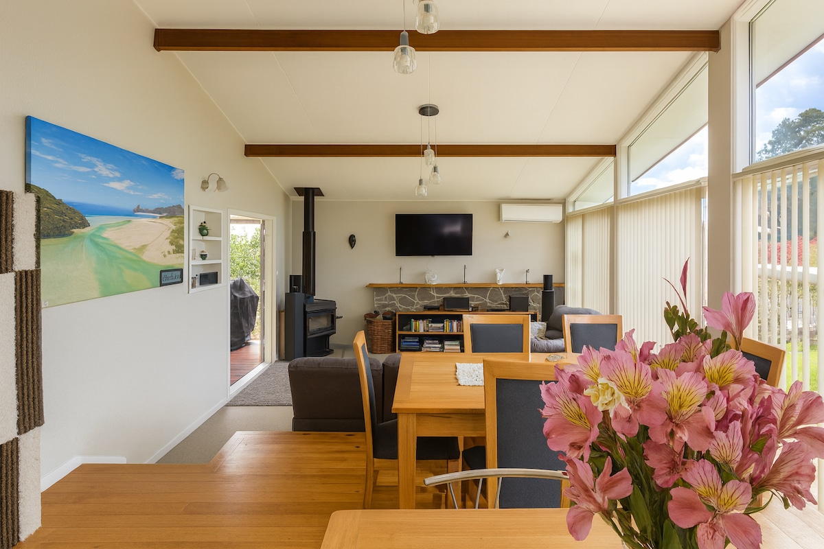 🛏️ Sleep in total comfort We know how important a good night's sleep is. That’s why we offer two luxurious Super King beds and one cozy Queen bed — perfect for families or groups seeking space and comfort. 🌿 Peaceful yet central Tucked away in a quiet cul-de-sac, our home offers tranquillity without sacrificing convenience. You’re just a short stroll from Motueka’s town centre, with shops, cafes, and local charm all within reach.
