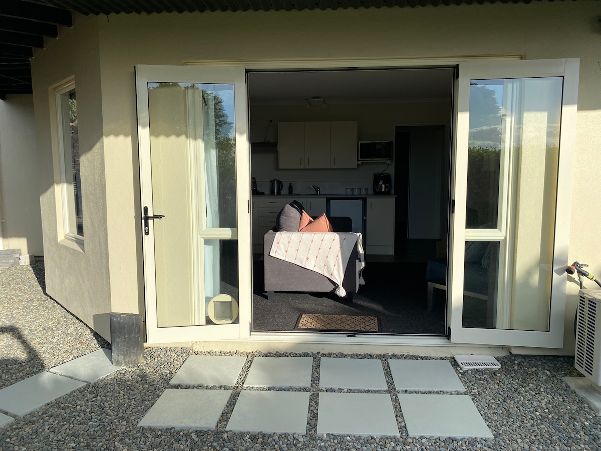 Modern studio apartment with private covered deck (not waterproof though in heavy rain) and sweeping views across Tasman Bay and north along the Boulder Bank. Perfect for couples, the apartment has quality linen, a relaxing sitting area, both inside and out. Very private and quiet.