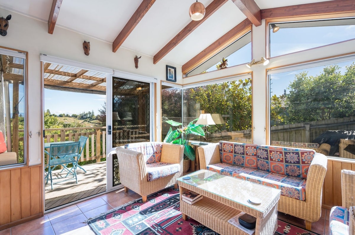 Relax at this peaceful and centrally located house. Birdsong and trees in abundance. The best location in Nelson. Set up for total comfort. The house is positioned well back from the road with large windows providing a light and leafy outlook with no noise. The house has new bathrooms, beds, fresh new towels and sheets, appliances and is fully equipped. Positioned with Melrose house, Fairfield park and the city within minutes walk in an established blue chip location this house is hard to beat