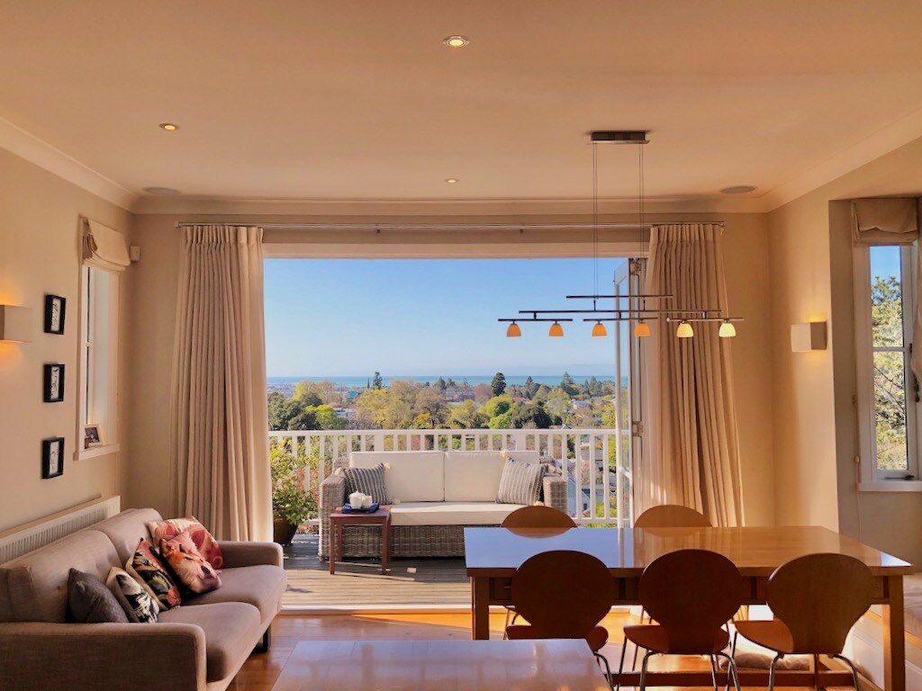 Located in Nelson's dress circle with beautiful views out to the hills and bay, this beautiful modern home is filled with light and has a large deck and fully-fenced garden for relaxing in. It's a short walk to town (less than 10 min walk to NCMA), or sit on the deck and enjoy the birdsong. The host is a fellow traveller who provides a welcoming and peaceful haven.