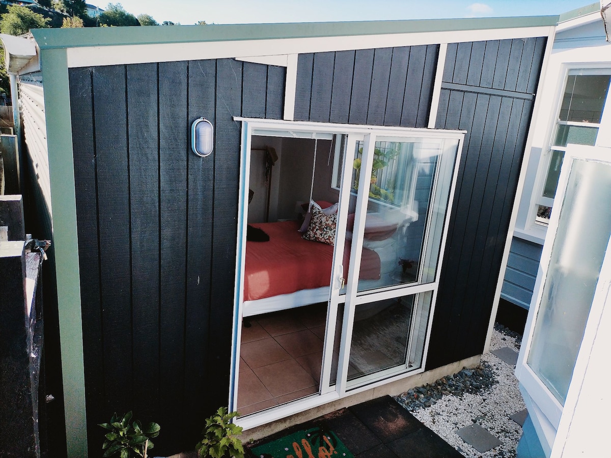 Inspired by the tiny house movement, the cottage packs a big punch. Constructed with native timbers, Plum Cottage integrates beautifully with the landscape. The cottage is privately nestled amongst the plum trees and gardens. Feel free to pick some tomatoes or a juicy plum! Summer sunsets are lovely. Located on the Tahunanui hillside with views to the distant mountains. It is an easy 1.3 km walk to the beach (15 min) or 5 min drive. CBD is 6km away (12/15 min drive). Bus stop is 13m walk.